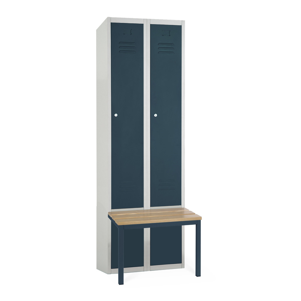 Kovová šatní skříňka s lavičkou, cylindrický zámek
