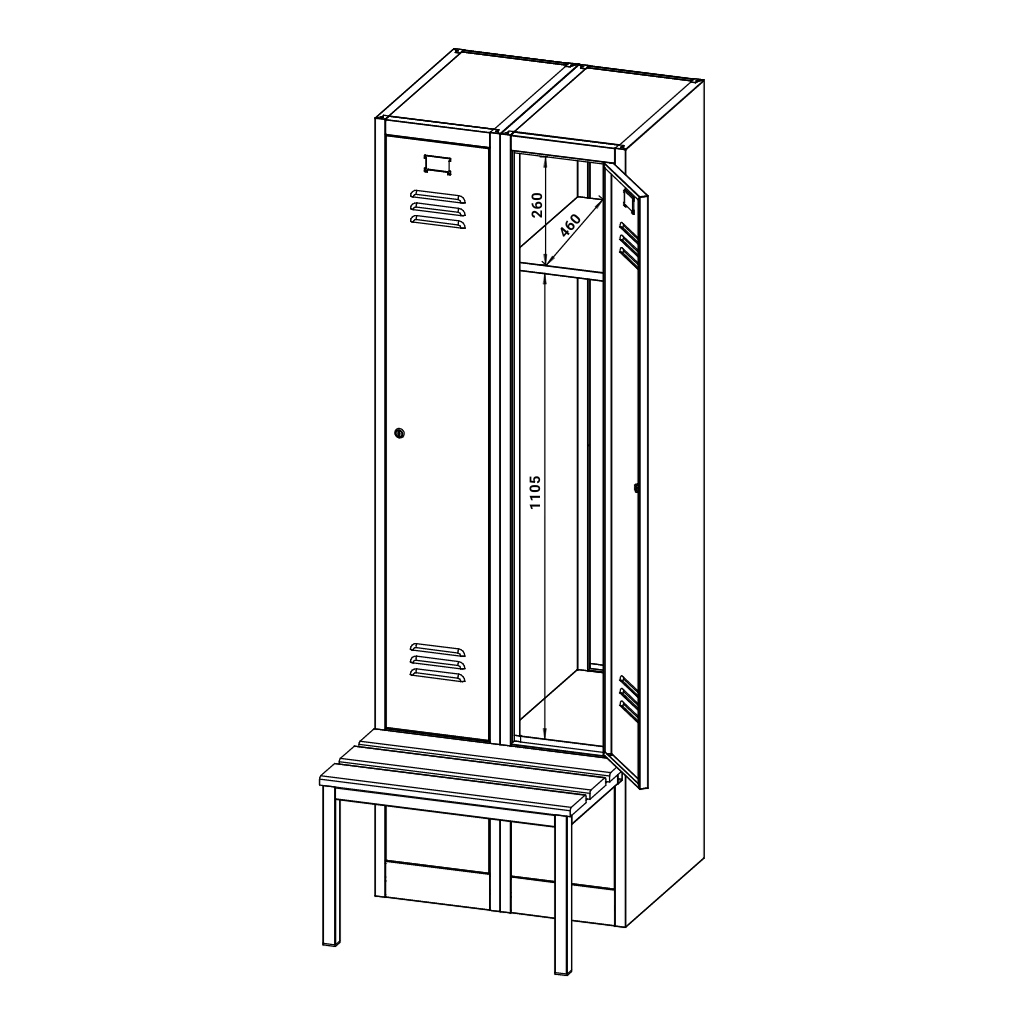 Kovová šatní skříňka s lavičkou, cylindrický zámek