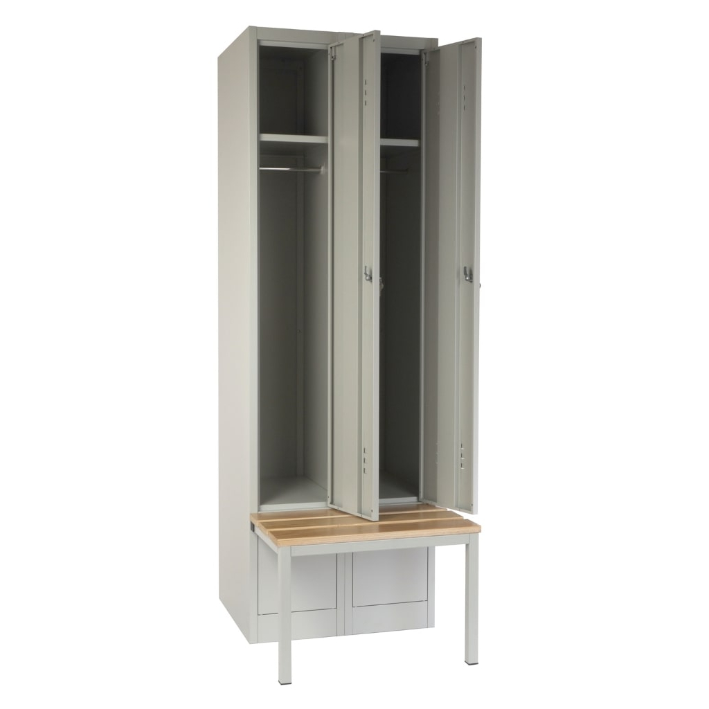 Kovová šatní skříňka s lavičkou, cylindrický zámek