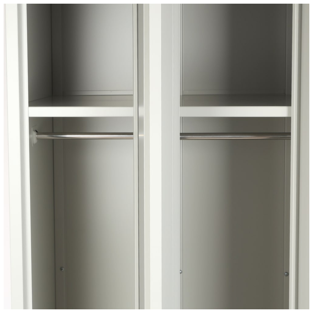 Skříň má 2 oddíly – každý se svým vlastním cylindrickým zámkem, ke kterému dostanete 2 klíče (celkem tedy 4). Vaše šaty a zavazadla tak budou v bezpečí.