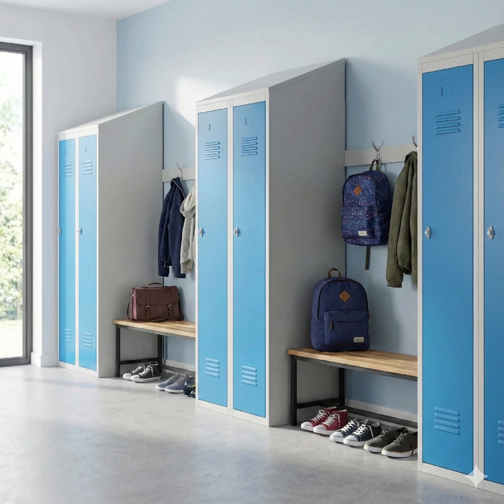 Kovová šatní dvojskříňka je pro hromadné převlékárny ideálním řešením. V prostoru se dá jednoduše připojit k jiným šatním skříním, a navíc vytvoří dostatek místa pro uložení nezbytných věcí.