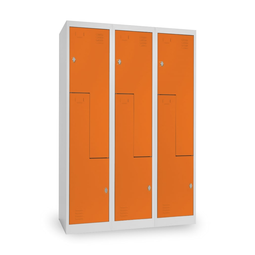Kovová šatní skříňka Z, 3 oddíly, 120 x 50 x 180 cm, otočný zámek, oranžová - ral 2004