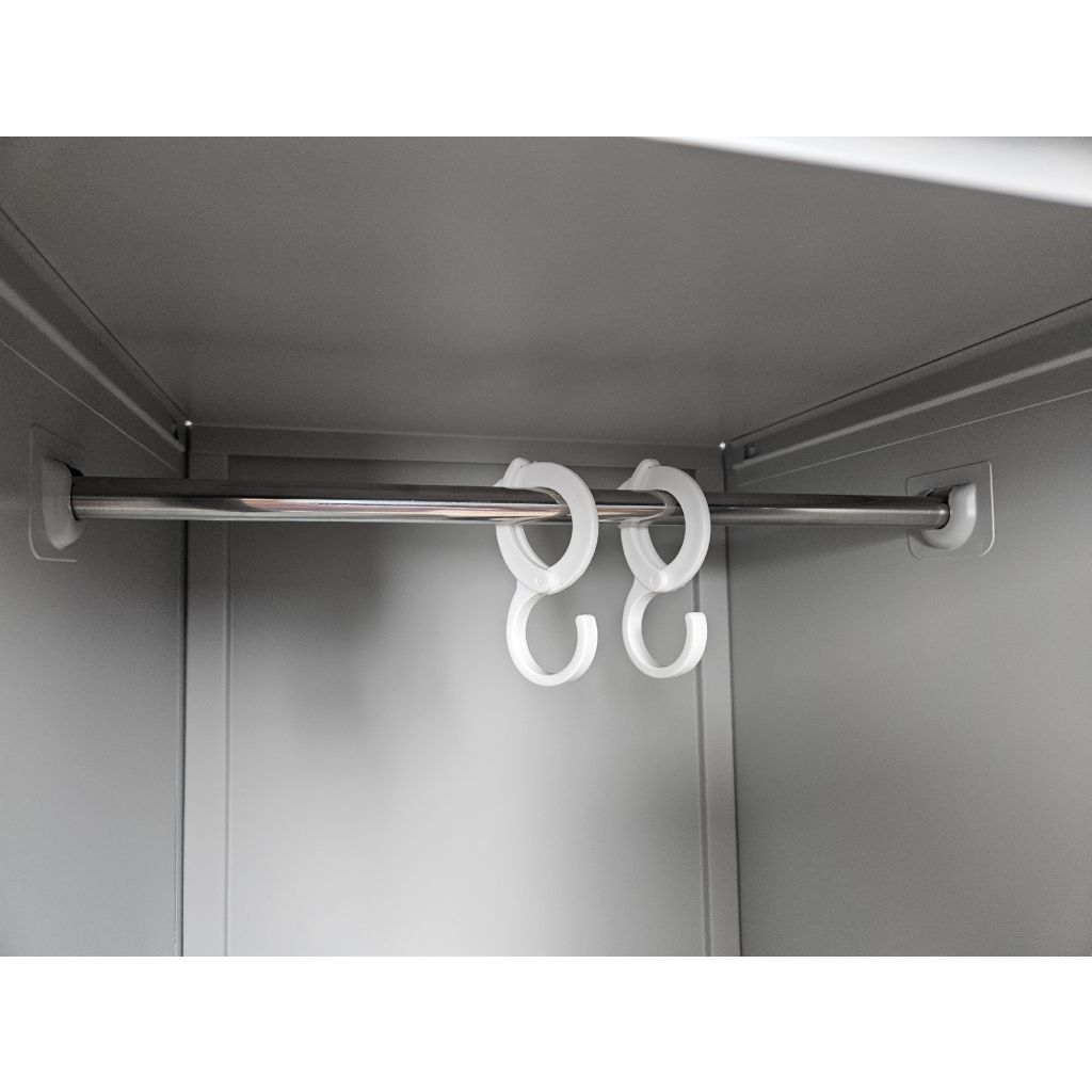 Všechny oddíly jsou v horní části vybavené šatníkovou tyčí se 2 háčky. Na dvířkách najdete držáky na jmenovky a také průduchy, které zajistí větrání.
