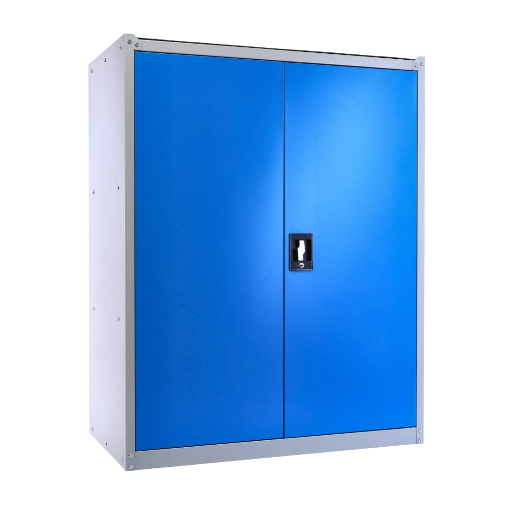 Kovová skříň na nářadí, 92 x 50 x 117 cm, cylindrický zámek, modrá - ral 5012