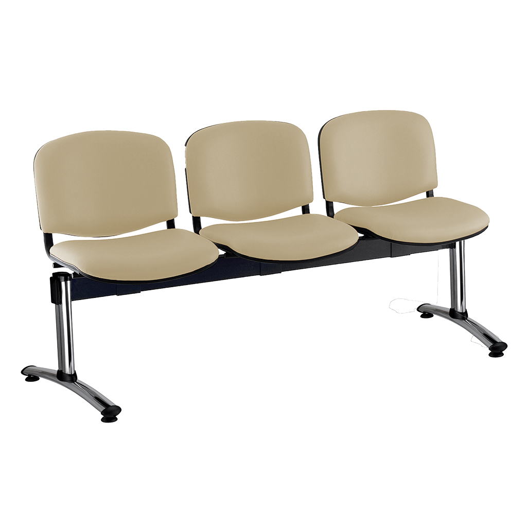 Kožená lavice ISO, 3-sedák - chromované nohy, béžová