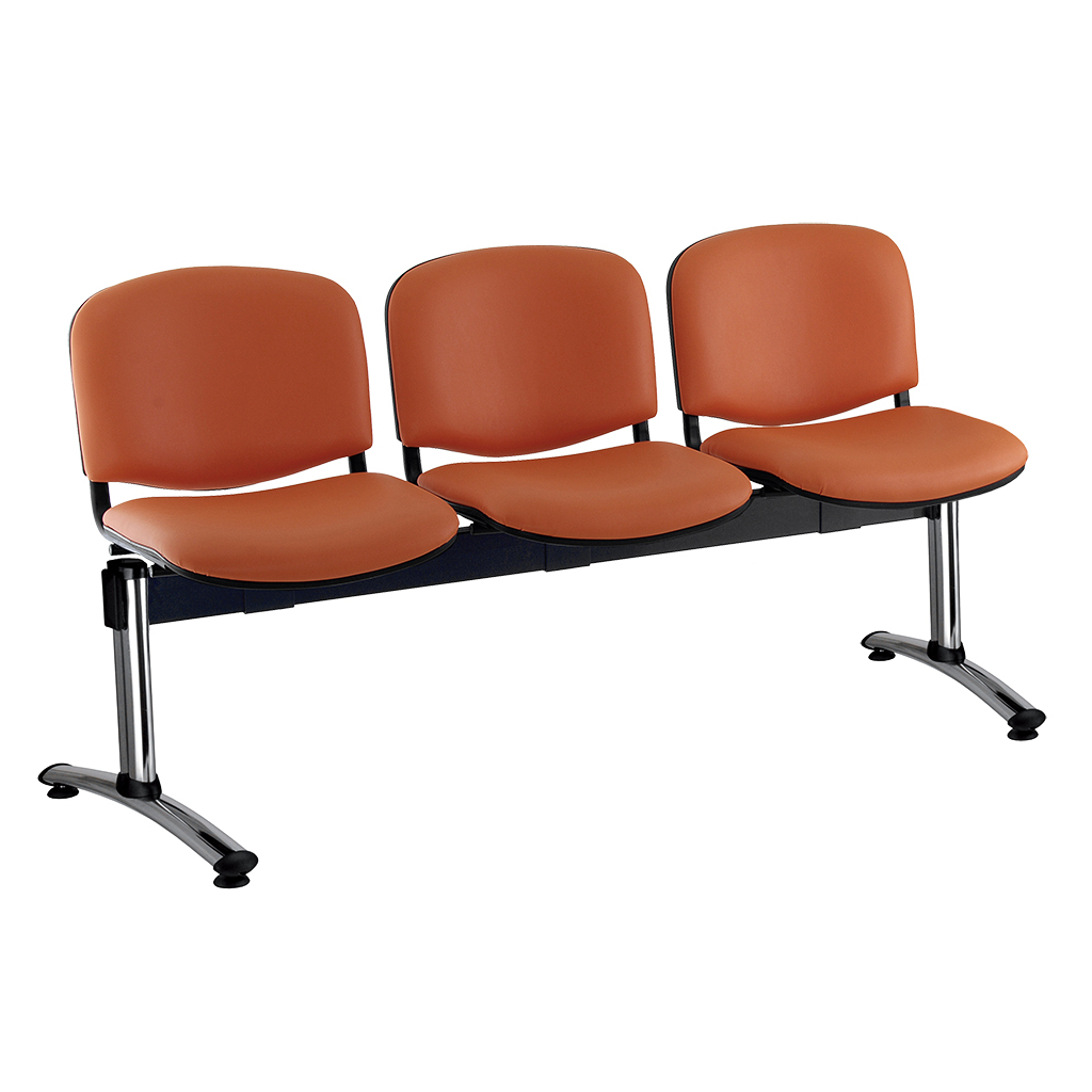 Kožená lavice ISO v provedení s chromovanými nohami je skvělým vybavením do veřejných prostorů, hal či nejrůznějších typů čekáren. Jednotlivá místa k sezení jsou umístěna na ocelové konstrukci lavice. Sedák i opěrák jsou čalouněny příjemnou eko kůží.