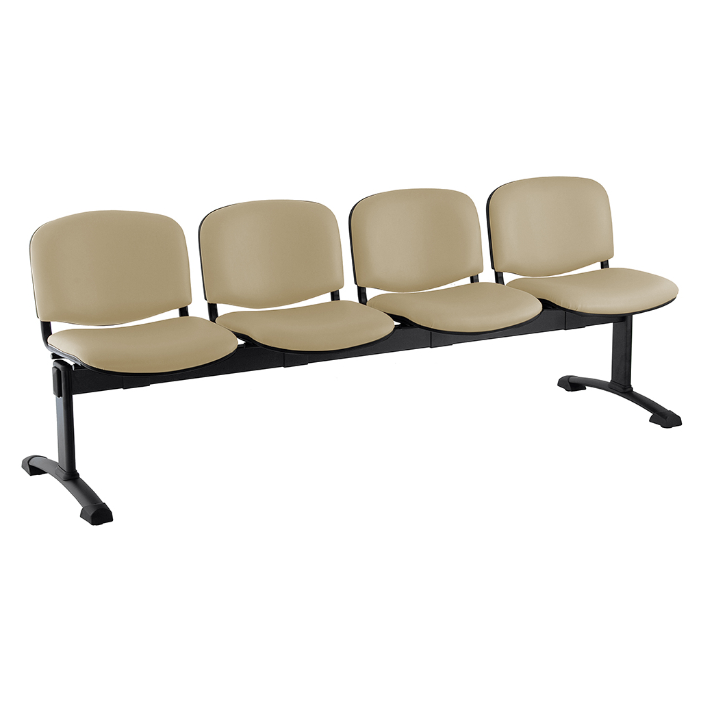 Kožená lavice ISO, 4-sedák - černé nohy, béžová