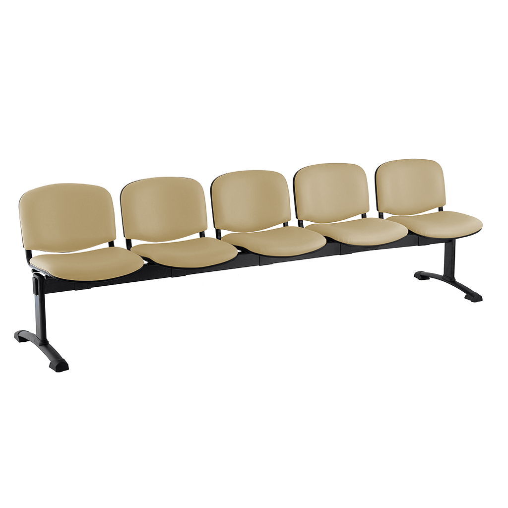 Kožená lavice ISO, 5-sedák - černé nohy, béžová