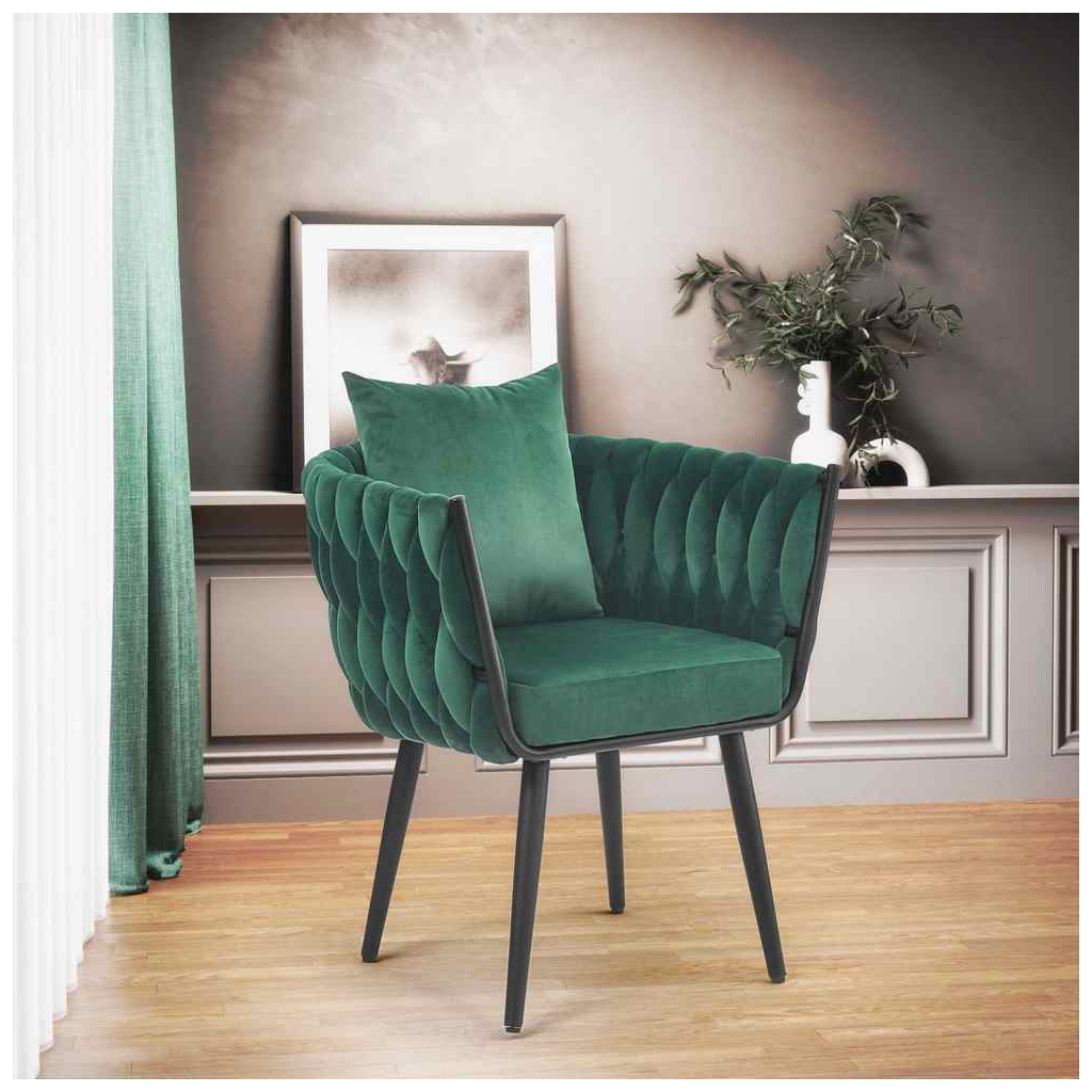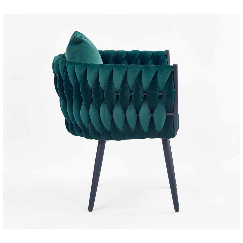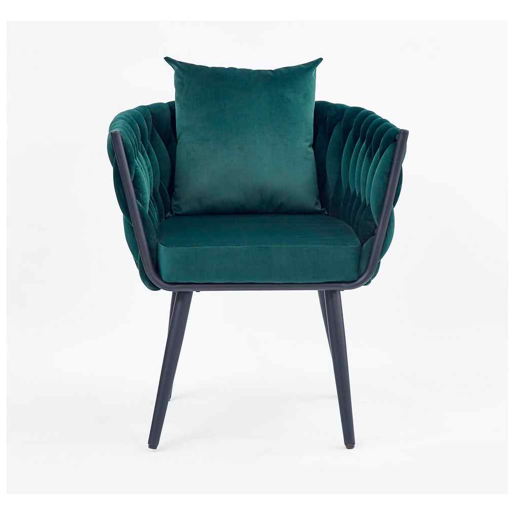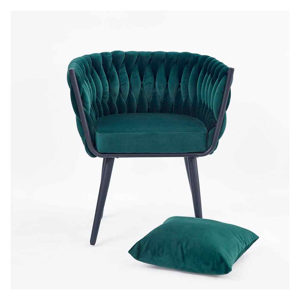 Toto elegantní křeslo s potahem z hebké látky skvěle zapadne do každého modernějšího interiéru. Jeho polstrování, které vybízí k usednutí, je po bocích prolétané konstrukcí a vytváří tak efektní podívanou. Komfortní opření pak zajistí odnímatelný polštář. Křeslo stojí na 4 nohách z odolné práškované oceli.