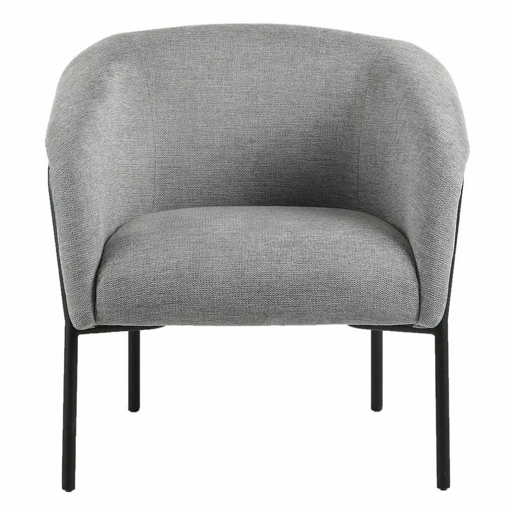 Potah z hruběji tkané látky mu dodává na pohodlí a eleganci, zatímco pevné kovové nohy zajišťují stabilitu a dlouhou životnost. Celkový komfort podtrhují područky, které se postarají o uvolnění vašich ramen.
