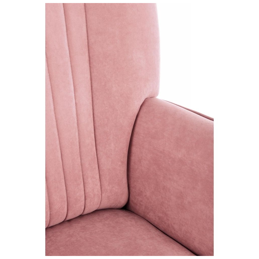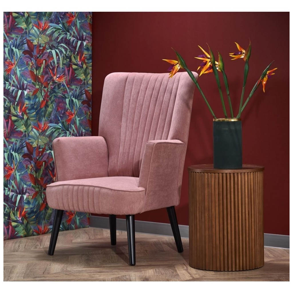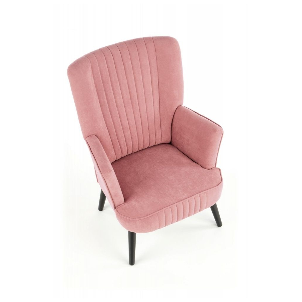 Křeslo je čalouněno sametovou látkou a zdobí ho dekorativní prošívání. Nožky jsou vyrobeny z pevného dřeva.