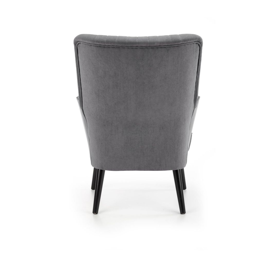 Křeslo je čalouněno sametovou látkou a zdobí ho dekorativní prošívání. Nožky jsou vyrobeny z pevného dřeva.