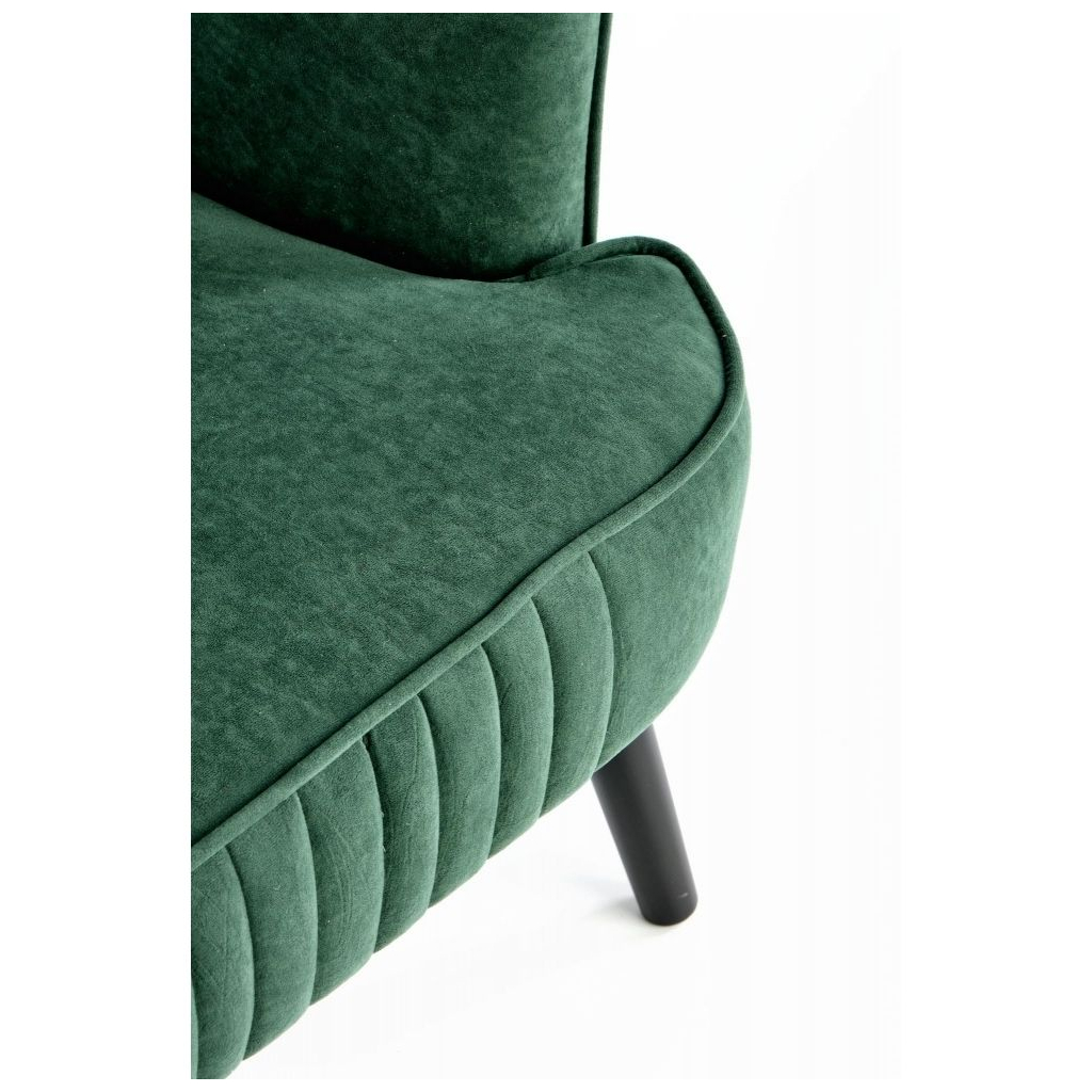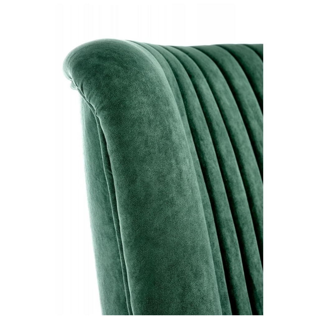Křeslo je čalouněno sametovou látkou a zdobí ho dekorativní prošívání. Nožky jsou vyrobeny z pevného dřeva.