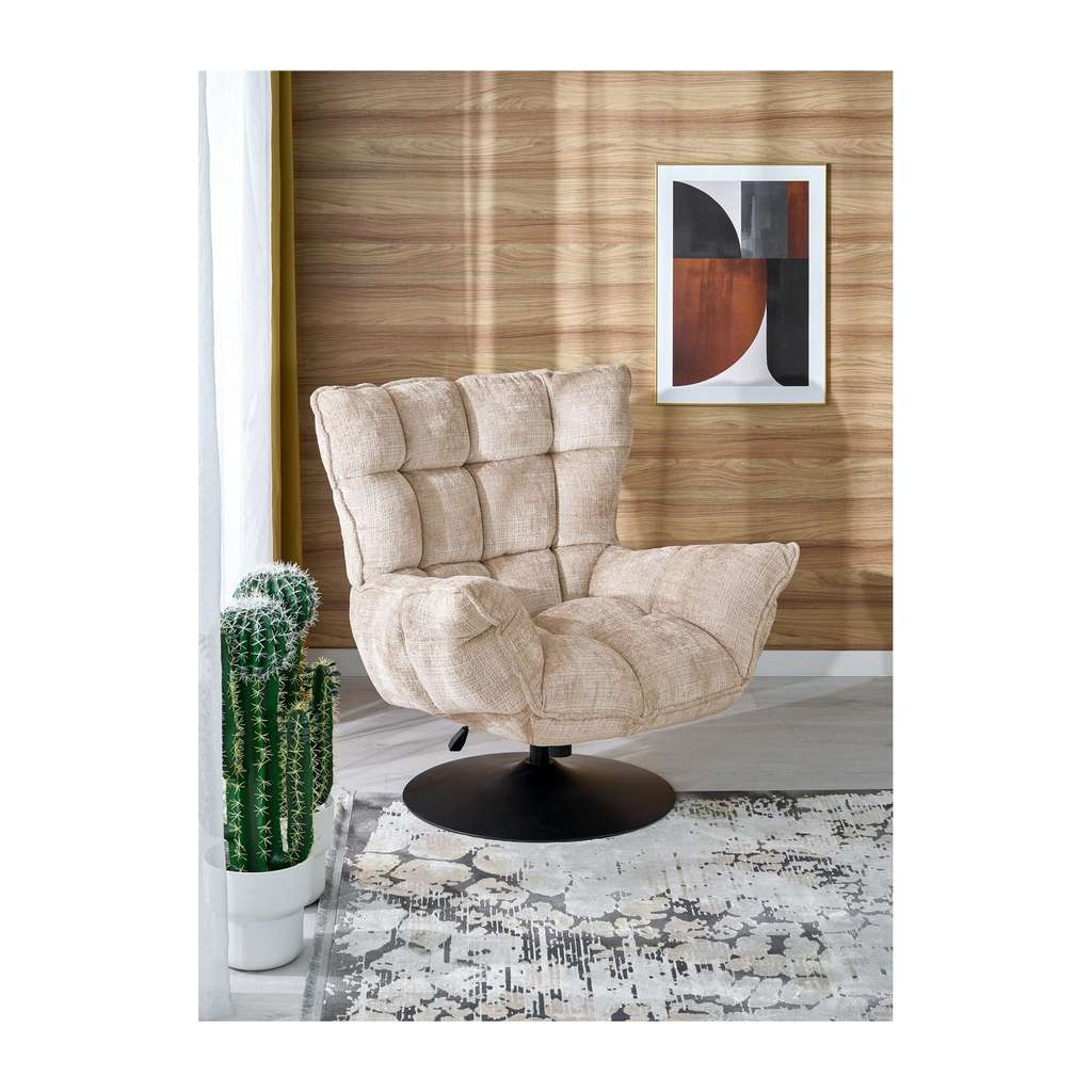 Křeslo Pontini je ideálním doplňkem pro váš obývací pokoj nebo relaxační kout. Nabízí pohodlí díky své kombinaci houpací a otočné funkce, která umožní uvolnění a snadný pohyb při sezení. Díky prostornému sedáku a vysokému opěráku zad poskytuje podpůrné a komfortní opření i během delšího odpočinku.