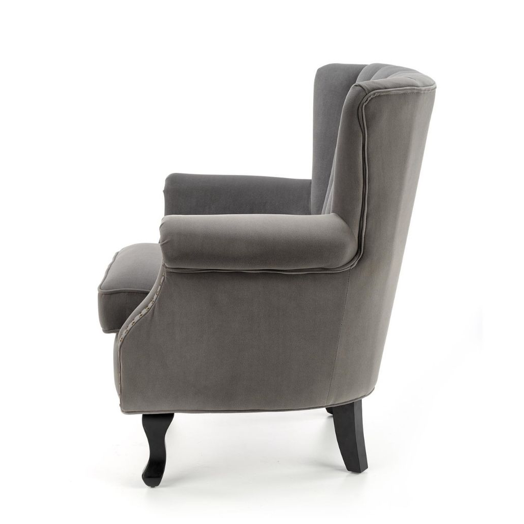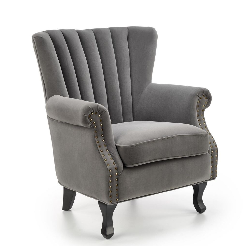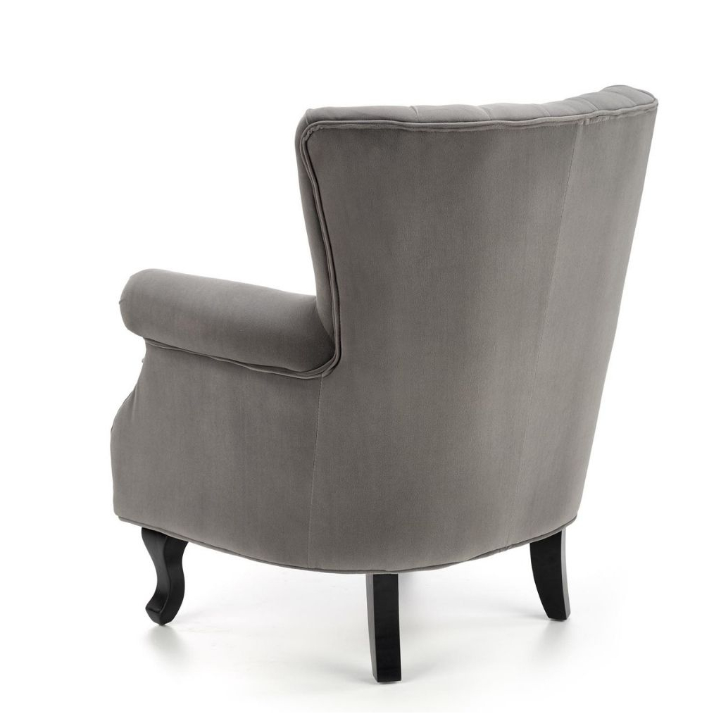 Nohy křesla jsou z masivního dřeva v tmavém barevném odstínu.