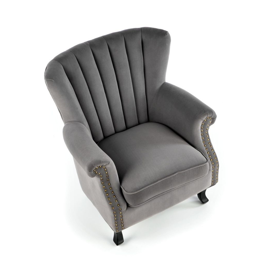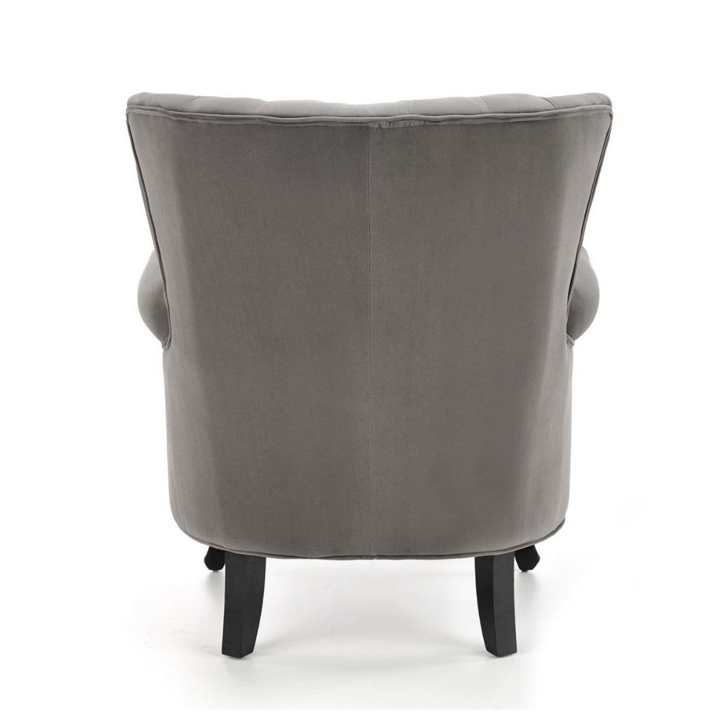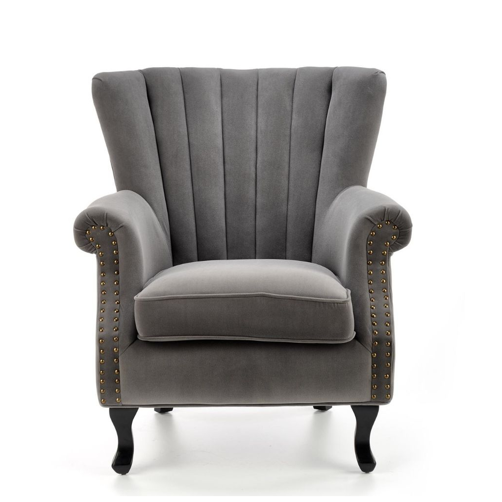 Nohy křesla jsou z masivního dřeva v tmavém barevném odstínu.