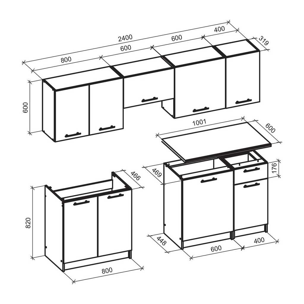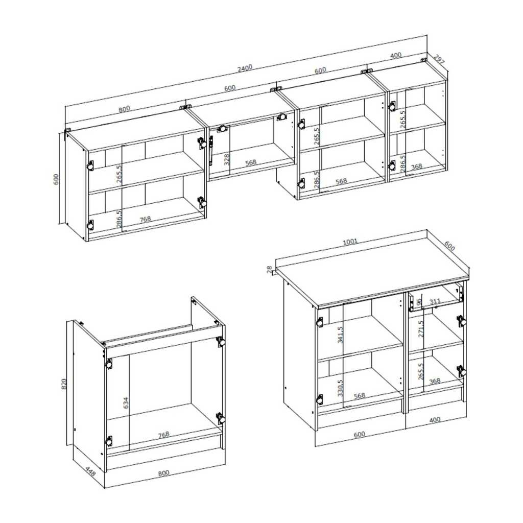 Linka je vyrobena z laminovaných desek, které zaručí nejen vysokou odolnost, ale také velmi snadnou údržbu. Vzhled je pak doplněn o plastové úchyty. Ty jsou vyrobeny ve stříbrné barvě. Jednotlivé prvky kuchyňské linky lze umístit i v jiném pořadí.