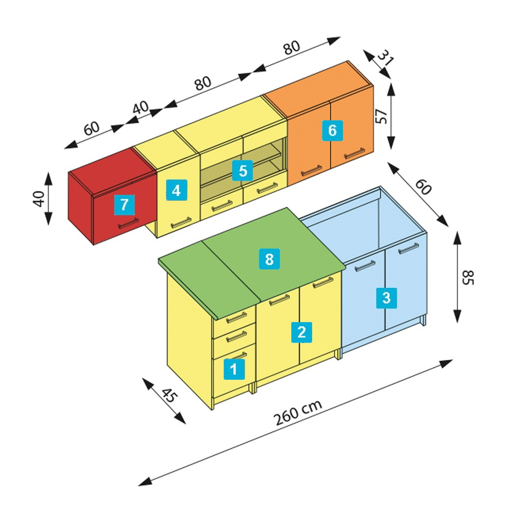Kuchyňská linka Perla vytváří praktické pracovní prostředí, které je doplněno moderním designem. Kompletní sestava kuchyňské linky Perla je dlouhá 260 cm a ve svých skříních nabízí mnoho úložného místa pro nejrůznější kuchyňské pomocníky. Horní závěsné skříňky jsou vybaveny plynovými písty a jejich otevírání je tak velmi pohodlné. Linka disponuje pracovní deskou v elegantní světlé barvě.