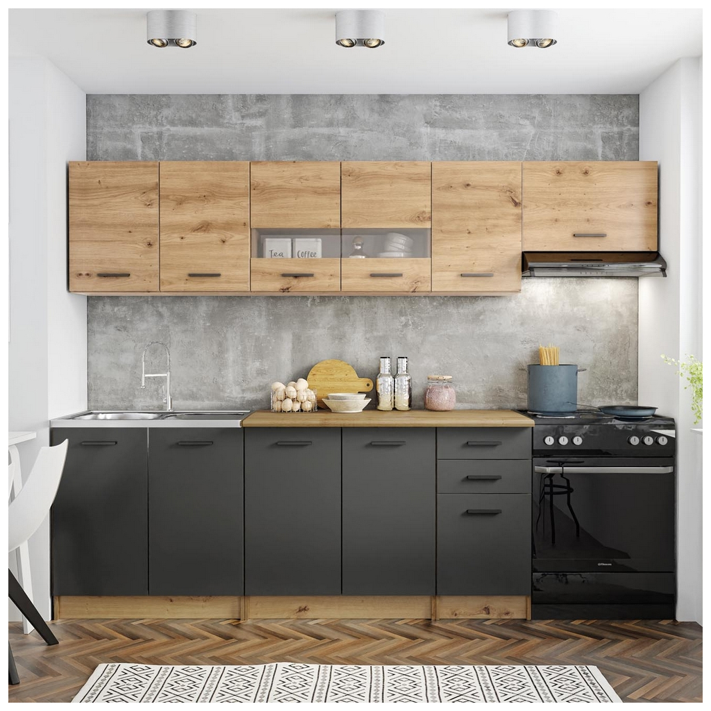 Kuchyňská linka Perla 260, dub artisan / tmavě šedá