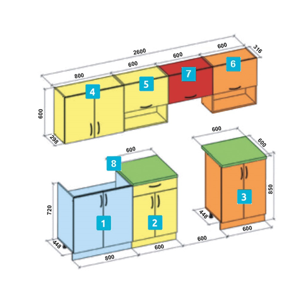 Linka je vyrobena z laminovaných desek, které zaručí nejen vysokou odolnost, ale také velmi snadnou údržbu. Vzhled je pak doplněn o plastové úchyty. Ty jsou vyrobeny ve stříbrné barvě. Velkou výhodou kuchyňské linky Viola jsou nastavitelné nohy s nacvakávacím soklem, které k celkové výšce přidají 10 cm. Jednotlivé prvky kuchyňské linky lze umístit i v jiném pořadí.