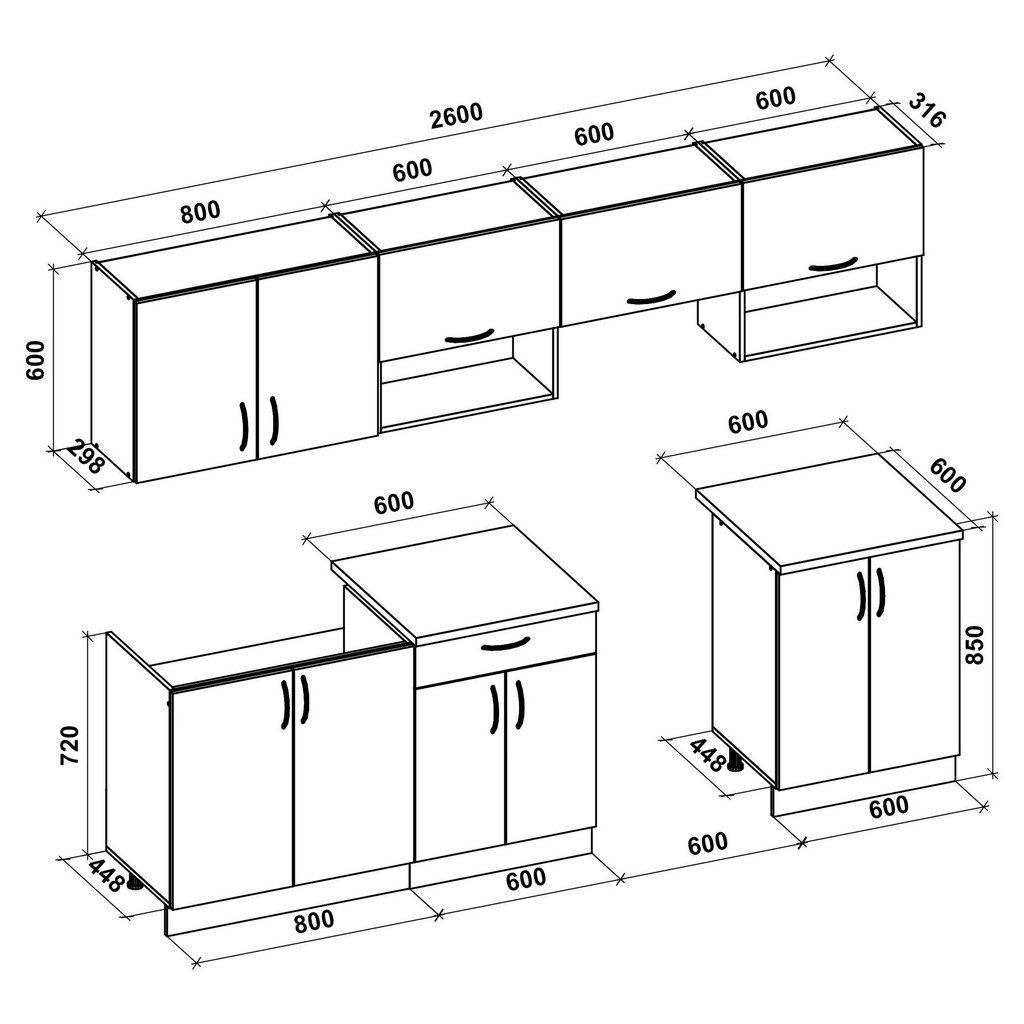 Kuchyňská linka Viola vytváří praktické pracovní prostředí, které je doplněno světlým designem. Je navržena v moderní kombinaci světlých barev a dezénu dubu sonoma. Kompletní sestava kuchyňské linky Viola je dlouhá 260 cm a ve svých skříních nabízí mnoho úložného místa pro nejrůznější kuchyňské pomocníky. Horní závěsné skříňky jsou vybaveny plynovými písty a jejich otevírání je tak velmi pohodlné. Linka disponuje pracovní deskou v elegantním bílém provedení.