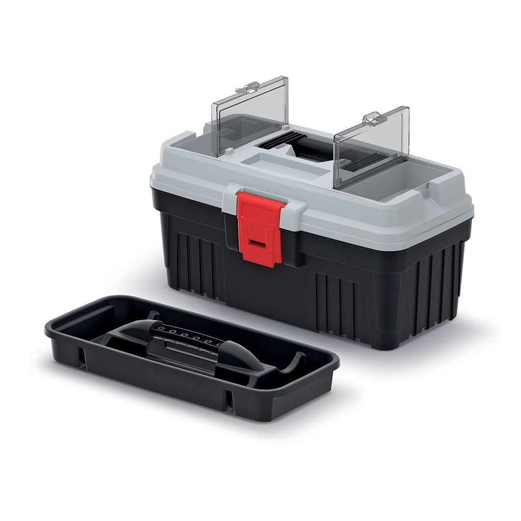 Tento jednoduchý kufr na nářadí dobře poslouží každému kutilovi nebo údržbáři. Celá konstrukce je z tvrzeného plastu, což schránce propůjčuje mechanickou odolnost a nosnost až 10 kg.