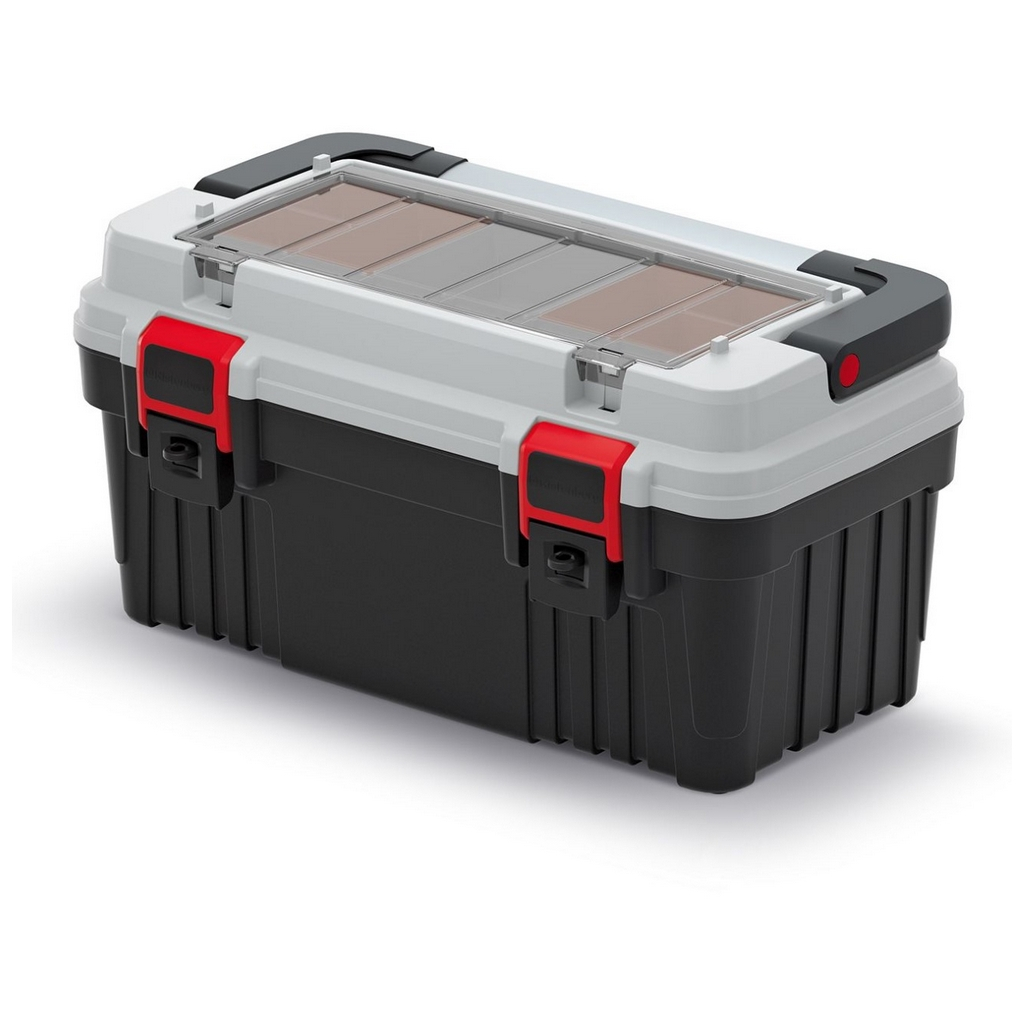 Kufr na nářadí s kovovým držadlem 47 × 25,6 × 23,8 cm, krabičky, šedá