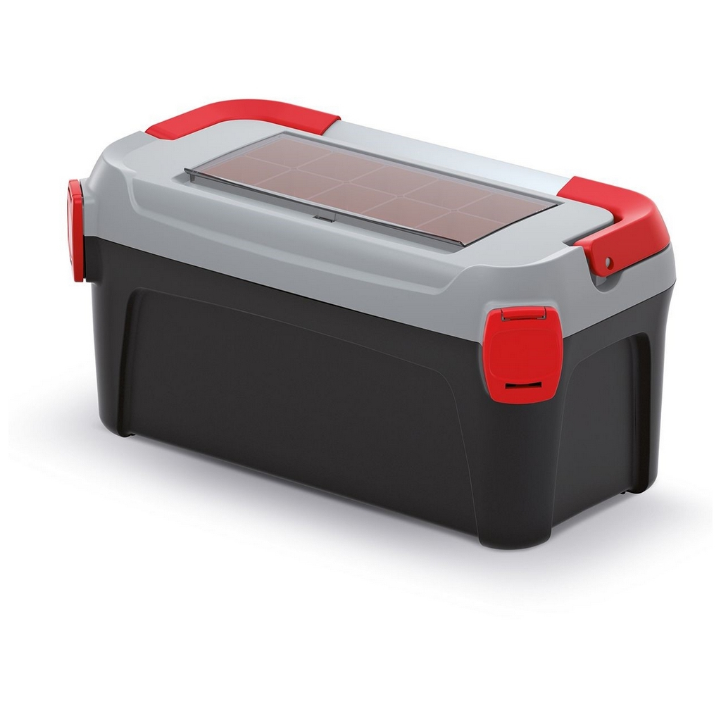 Tento jednoduchý kufr na nářadí dobře poslouží každému kutilovi nebo údržbáři. Elegantní celoplastová konstrukce kufru unese až 12 kg.