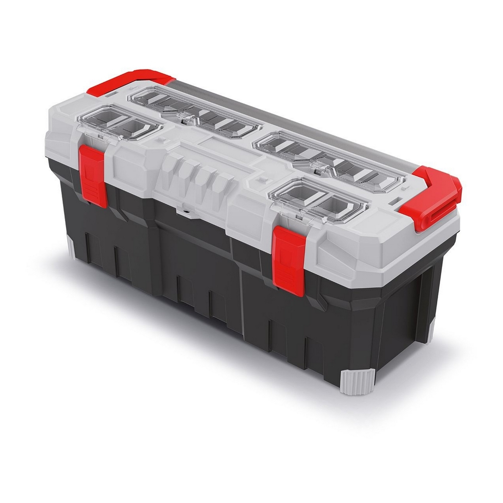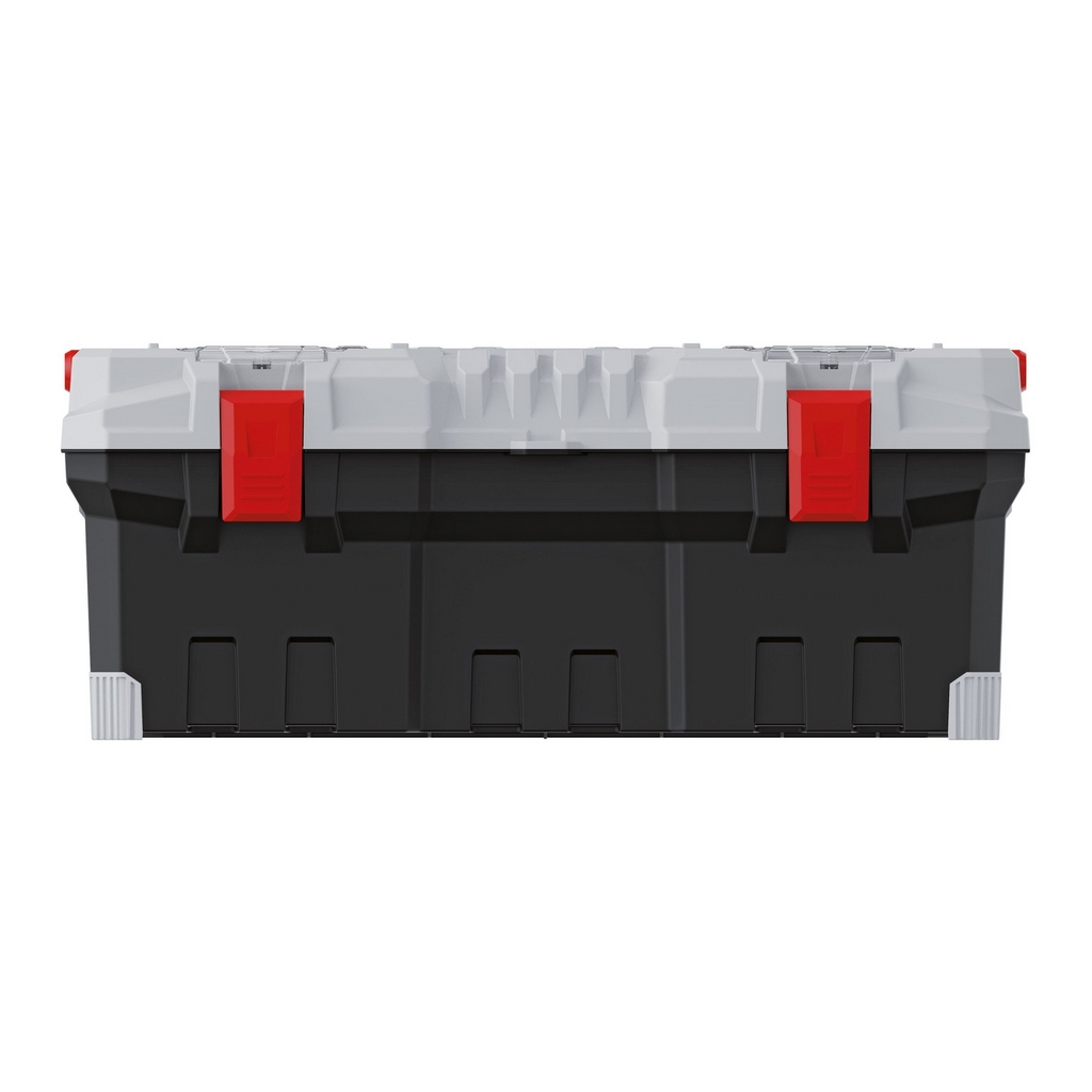 Tento kufr na nářadí dobře poslouží každému kutilovi nebo údržbáři. Tělo je z tvrzeného plastu, což schránce propůjčuje mechanickou odolnost a nosnost až 30 kg. K té přispívá i masivní hliníkové držadlo.