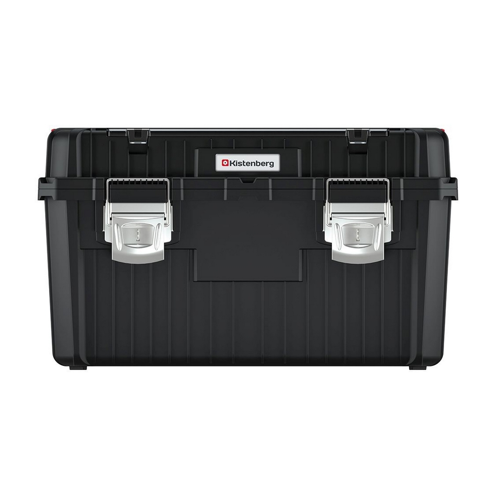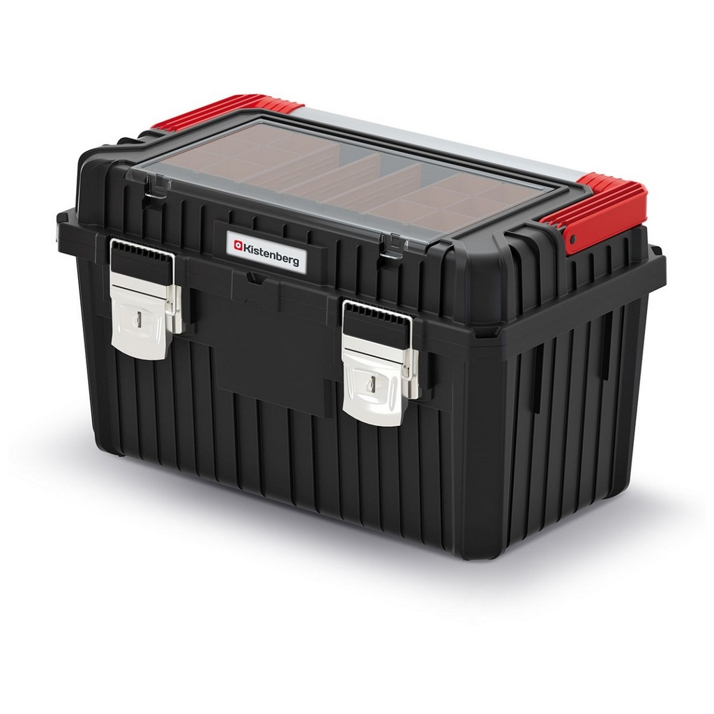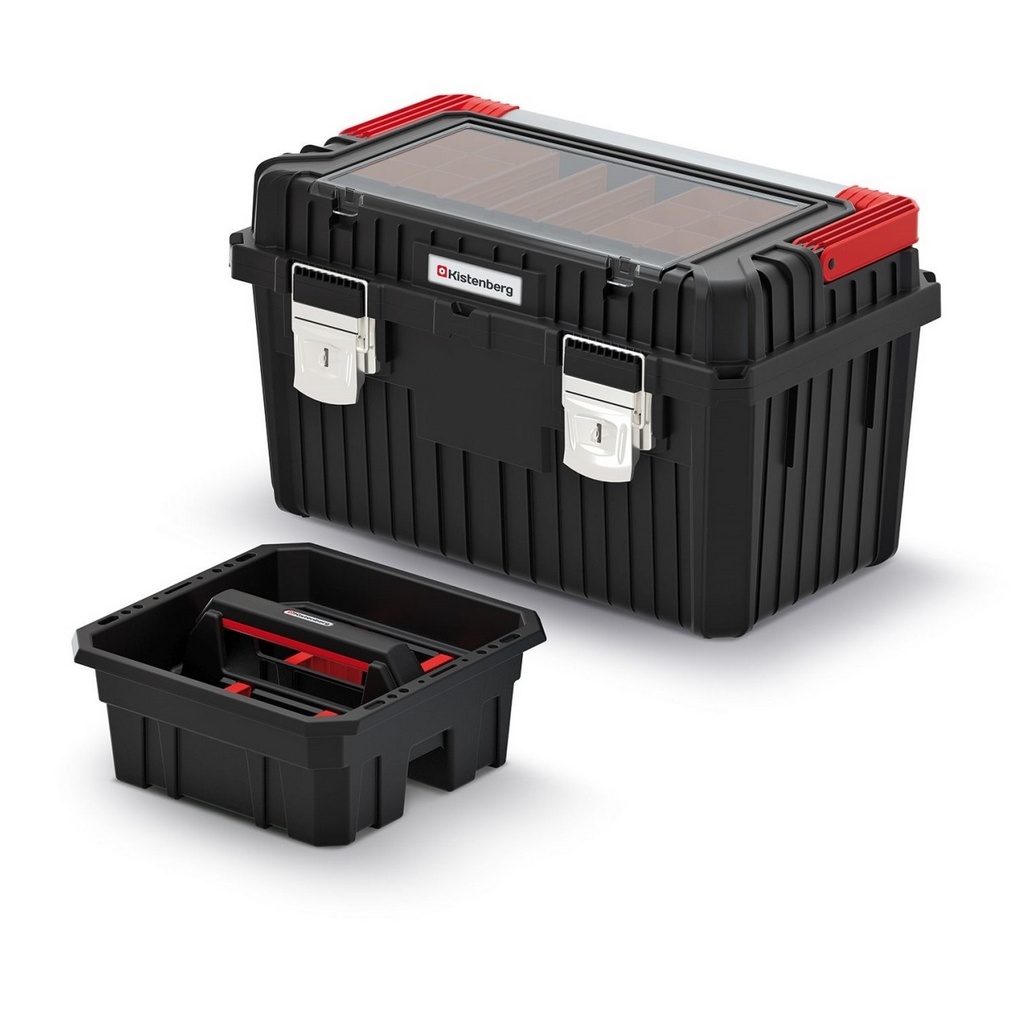 Na tento bytelný kufr na nářadí se můžete spolehnout i v náročnějších podmínkách. Konstrukce je z tvrzeného plastu a je žebrovaná, což schránce propůjčuje vysokou mechanickou odolnost a nosnost až 25 kg. Víko jistí dva ocelové zámky.