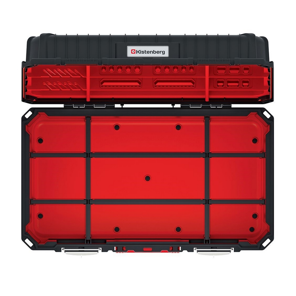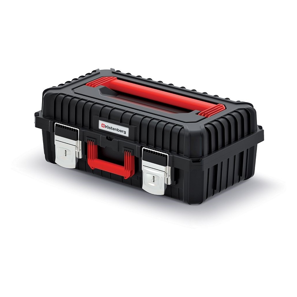 Na tento bytelný kufr na nářadí se můžete spolehnout i v náročnějších podmínkách. Konstrukce je z tvrzeného plastu a je žebrovaná, což schránce propůjčuje vysokou mechanickou odolnost a nosnost až 25 kg. Víko jistí dva ocelové zámky.