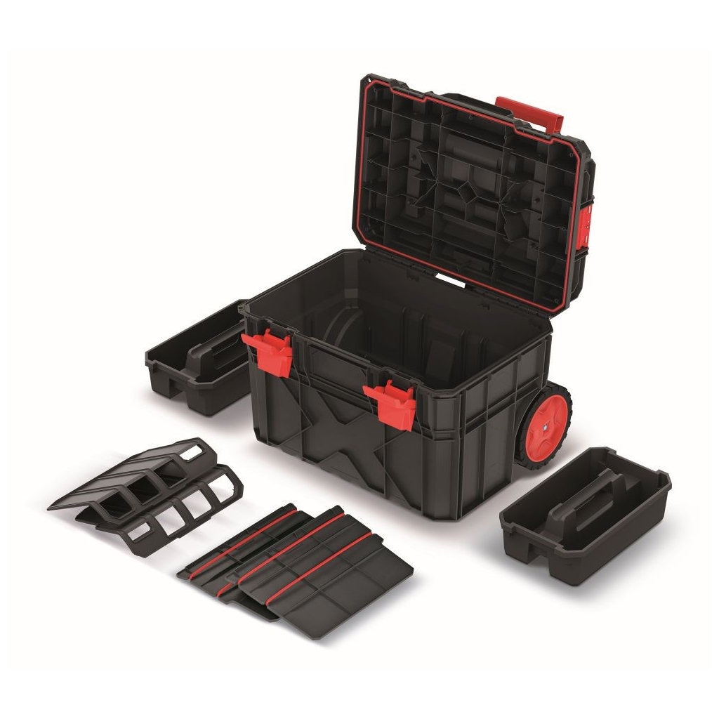 Takto si můžete poskládat celou přenosnou dílnu – v nabídce máme modely s organizéry, dvojími zámky i upínacími lištami. Pro co nejpohodlnější transport doporučujeme jako základnu celé sestavy použít model na kolečkách.