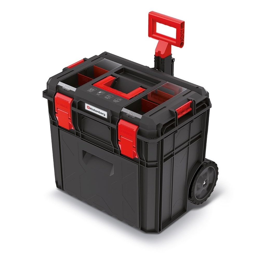 Takto si můžete poskládat celou přenosnou dílnu – v nabídce máme modely s organizéry, dvojími zámky i upínacími lištami. Pro co nejpohodlnější transport doporučujeme jako základnu celé sestavy použít model na kolečkách.