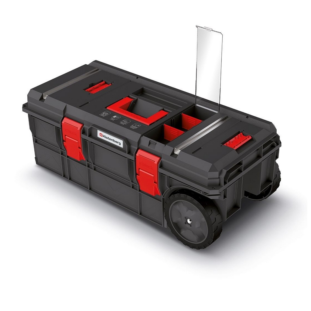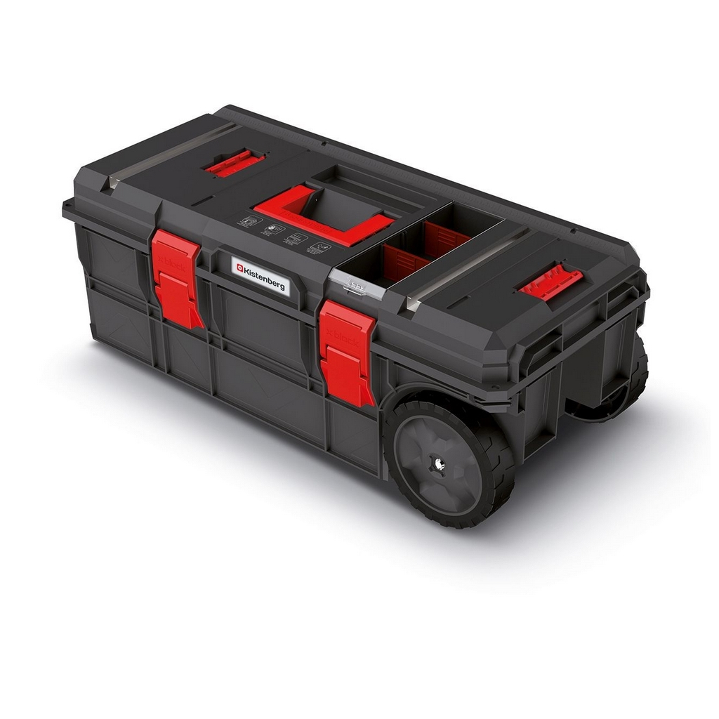 Takto si můžete poskládat celou přenosnou dílnu – v nabídce máme modely s organizéry, dvojími zámky i upínacími lištami. Pro co nejpohodlnější transport doporučujeme jako základnu celé sestavy použít model na kolečkách.