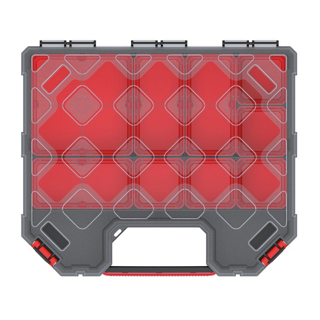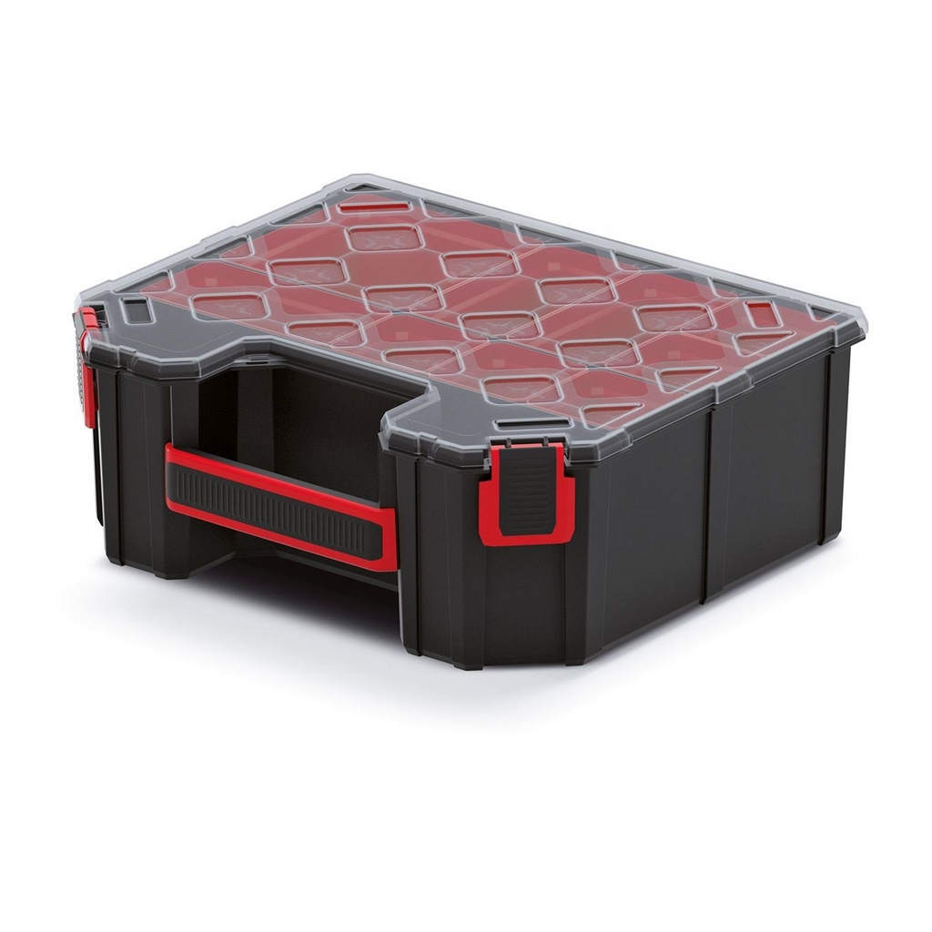 Organizéry představují praktický způsob, jak si udržet pořádek v drobnějším náčiní a součástkách a zároveň je mít vždy po ruce. Tento model je vybaven krabičkami, pomocí kterých si úložný prostor přizpůsobíte přesně na míru. Průhledné víko z polypropylenu vám usnadní hledání toho správného dílu i bez nutnosti otevření.