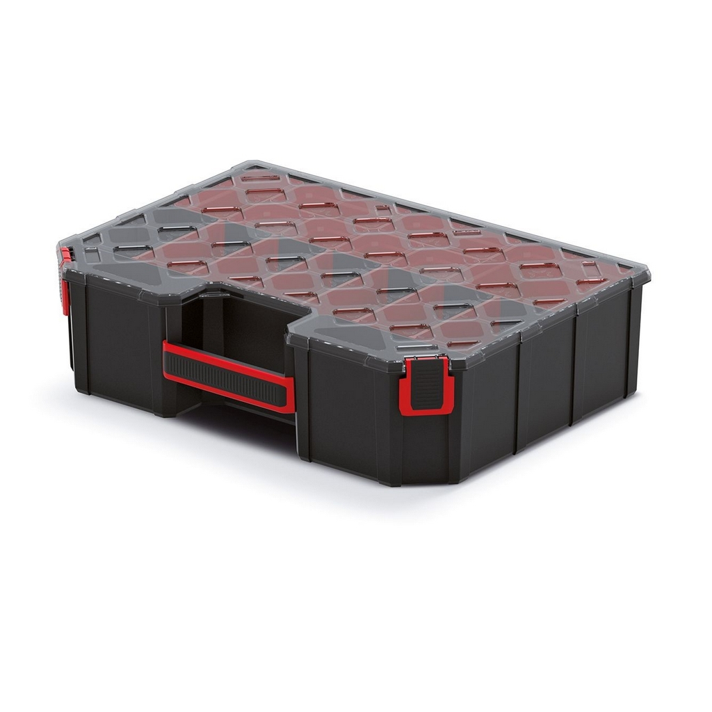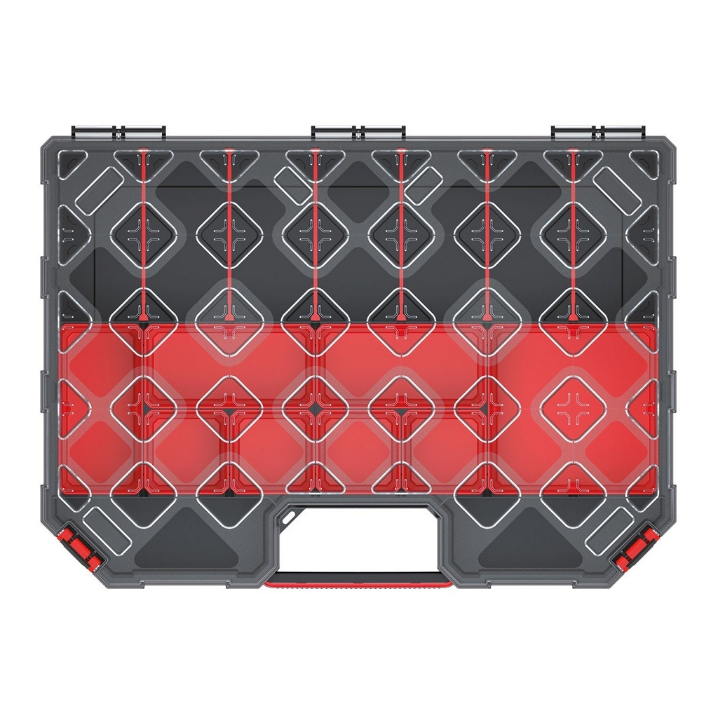 Organizéry představují praktický způsob, jak si udržet pořádek v drobnějším náčiní a součástkách a zároveň je mít vždy po ruce. Tento model je vybaven kombinací odnímatelných přepážek a krabiček, pomocí kterých si úložný prostor přizpůsobíte přesně na míru. Průhledné víko z odolného polykarbonátu vám usnadní hledání toho správného dílu i bez nutnosti otevření.