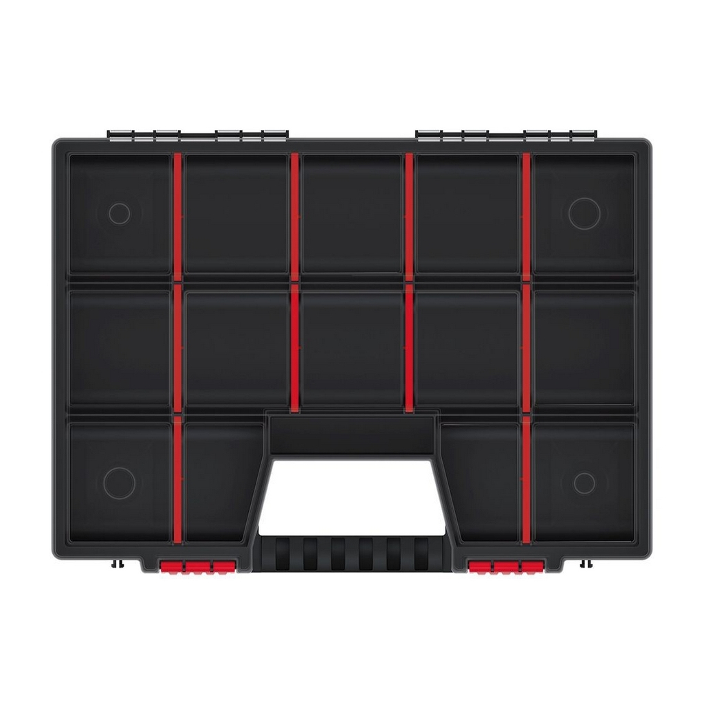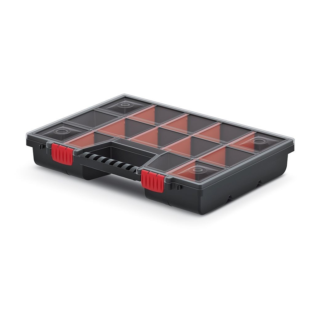 Organizéry představují praktický způsob, jak si udržet pořádek v drobnějším náčiní a součástkách a zároveň je mít vždy po ruce. Tento model je vybaven odnímatelnými přepážkami, pomocí kterých si úložný prostor přizpůsobíte přesně na míru. Průhledné víko z odolného plastu vám usnadní hledání toho správného dílu i bez nutnosti otevření.