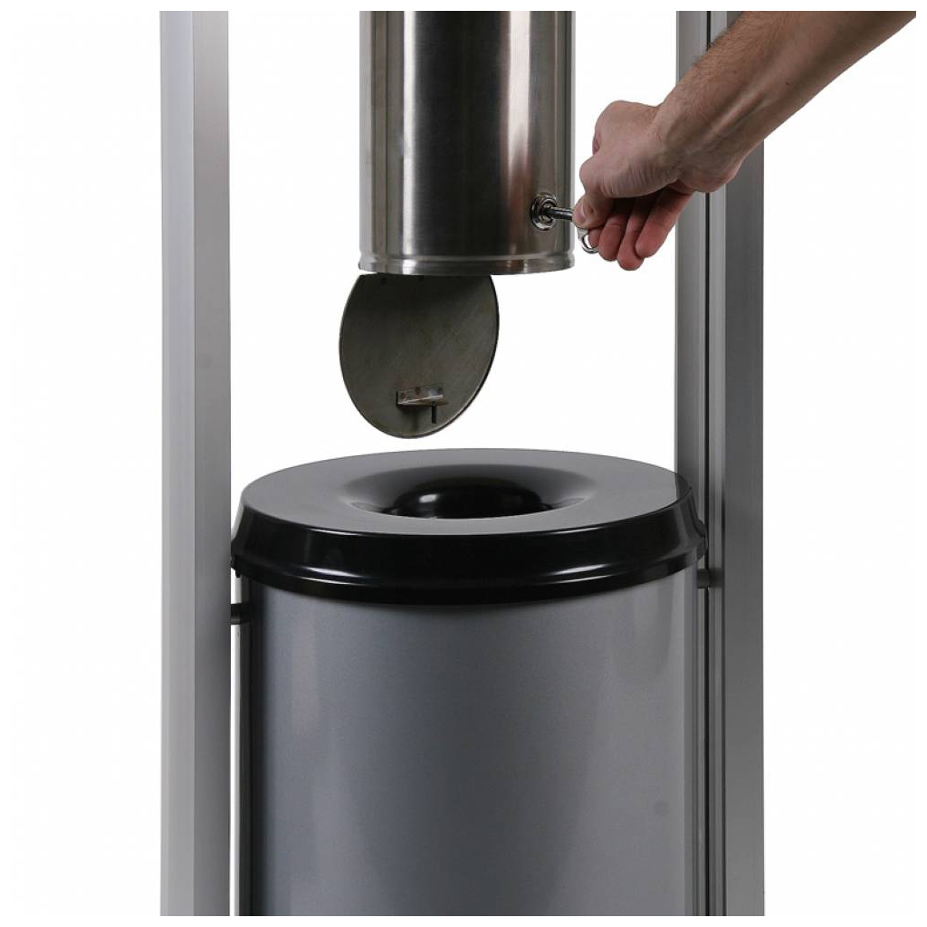 Kuřácký stolek s rozměry 70 x 110 cm je praktickým vybavením do venkovních prostorů, kde bude díky svému zpracování nejen efektivní, ale bude navíc i dobře vypadat. Velkou výhodou je jeho kulatý tvar, protože je v prostoru dostupný ze všech stran pro více uživatelů najednou. Kuřácký stolek se skládá z odpadkového koše, kovového popelníku a masivní desky, která je odolná proti nepříznivému počasí i proti žhavým nedopalkům. Popelník je vybaven uzamykatelným zásobníkem, který jednoduše zamezí jeho zneužití a při čištění se obsah vysype rovnou do koše. Stolek lze jednoduše a bezpečně přichytit k zemi pomocí předvrtaných děr v podstavě.