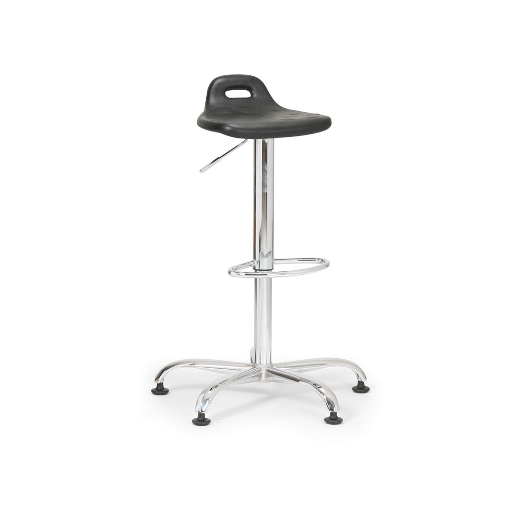 Laboratorní stolička je skvělou volbou do laboratoří či průmyslových oblastí, zejména pak do montážních hal k pracovním linkám. Židle je vybavena pístem pro výškové nastavení a zajistí při práci vždy pohodlné sezení. Výška sedu od země u této stoličky dosahuje až 81 cm a i díky tomu má opěrný kruh pro podložení vašich nohou.