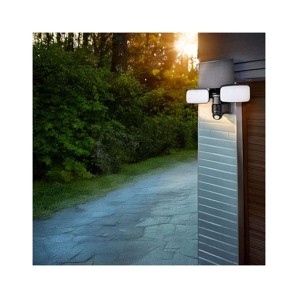 Vestavěný pohybový senzor automaticky aktivuje světlo při detekci pohybu až do vzdálenosti 6 metrů, což zajišťuje zvýšenou bezpečnost a pohodlí. Díky krytí IP54 je světlo odolné proti stříkající vodě a prachu, což ho předurčuje k venkovnímu použití po celý rok. Robustní konstrukce z kvalitního plastu zaručuje dlouhou životnost zařízení.
