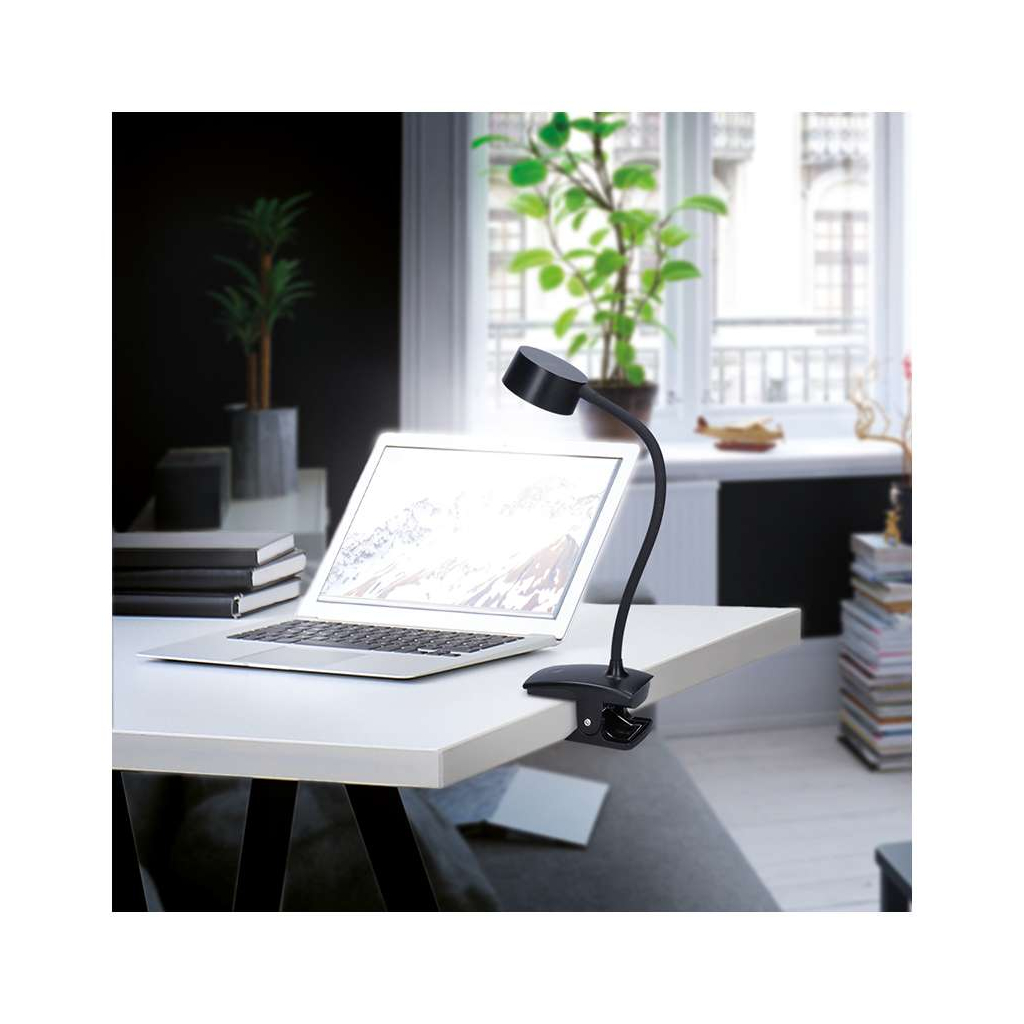 LED stolní lampička WO3001 nabíjecí s klipem, černá