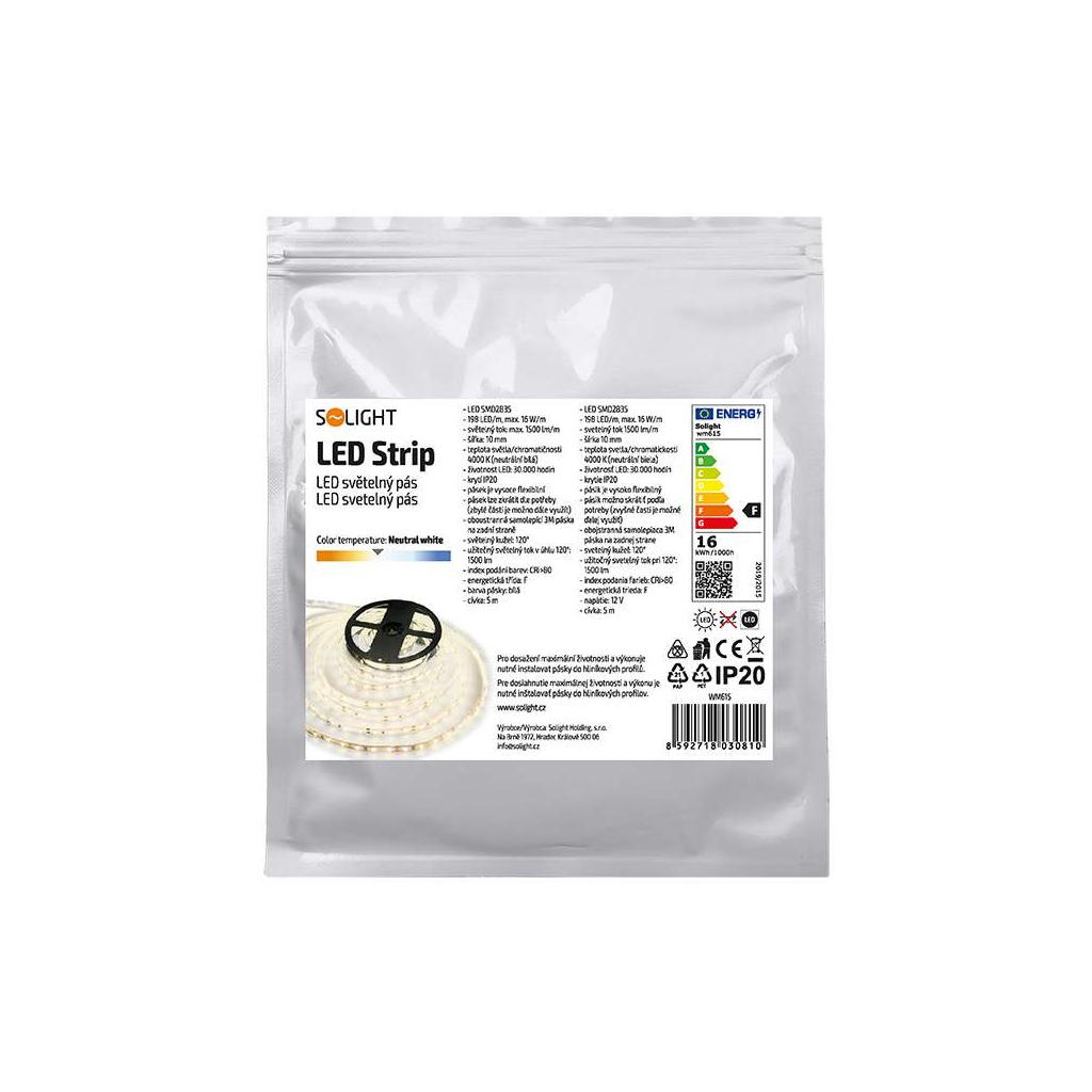 LED světelný pás WM615 nabízí všestranné a efektní osvětlení pro vaše interiéry. Díky délce 5 metrů a neutrální bílé barvě světla o teplotě 4000 K je ideální volbou pro osvětlení pracovních ploch, dekorací či podhledů. Silný světelný tok 1500 lumenů zajišťuje jasné a příjemné světlo, které zvýrazní každý prostor.
