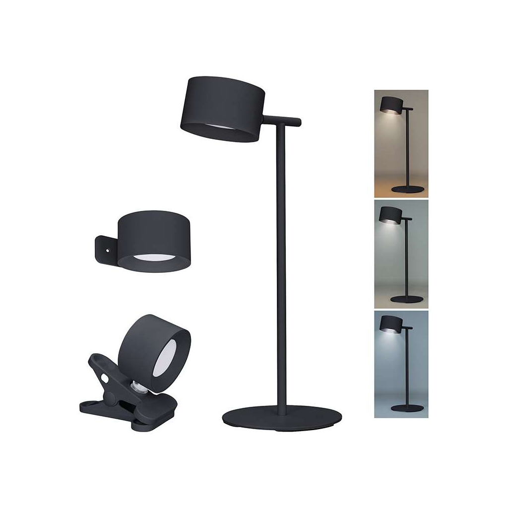 Součástí lampičky je nabíjecí baterie, která umožňuje až 3,5 hodin nepřetržitého svícení bez nutnosti připojení do sítě. Díky tomu je přenosná a všestranná – můžete ji snadno použít na stole, připnout pomocí klipu nebo zavěsit na stěnu. Praktický USB kabel zajišťuje pohodlné nabíjení, přičemž adaptér není potřeba dokupovat.