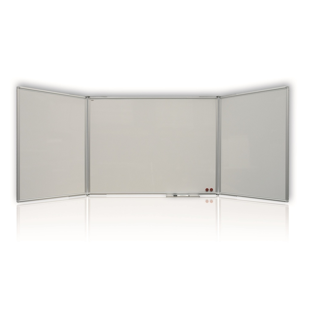 Magnetická rozkládací tabule je skvělá pro prezentaci a bude tak výborným doplňkem nejen do vaši kanceláře. Tento praktický nástroj se základními rozměry 150 x 100 cm lze rozložit až na 300 x 100 cm a jednoduše tak vznikne další popisovatelný prostor. Jelikož se dá pomocí šroubů zavěsit na zeď, nezabere v místnosti prakticky žádné místo. Magnetická tabule disponuje kvalitním povrchem, díky kterému už nezaniknou žádné barvy a samotné psaní je velmi pohodlné. Tabule je dodávána včetně 30 cm dlouhého plastového držáku, který je skvěle využitelný pro odložení fixů či magnetů.