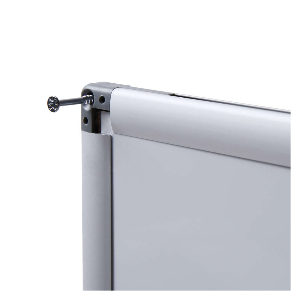 Magnetická tabule Whiteboard SICO je výborným řešením pro prezentaci informací a skvěle tak doplní vaší kancelář či zasedací místnost. Velkou výhodou tabule je možnost zavěšení na zeď, a to buď prostřednictvím uzpůsobených rohů, nebo pomocí fixačních háků. Díky tomu nezabere v prostoru prakticky žádné místo. Tabuli si navíc můžete podle potřeby zavěsit jak horizontálně, tak i vertikálně.
