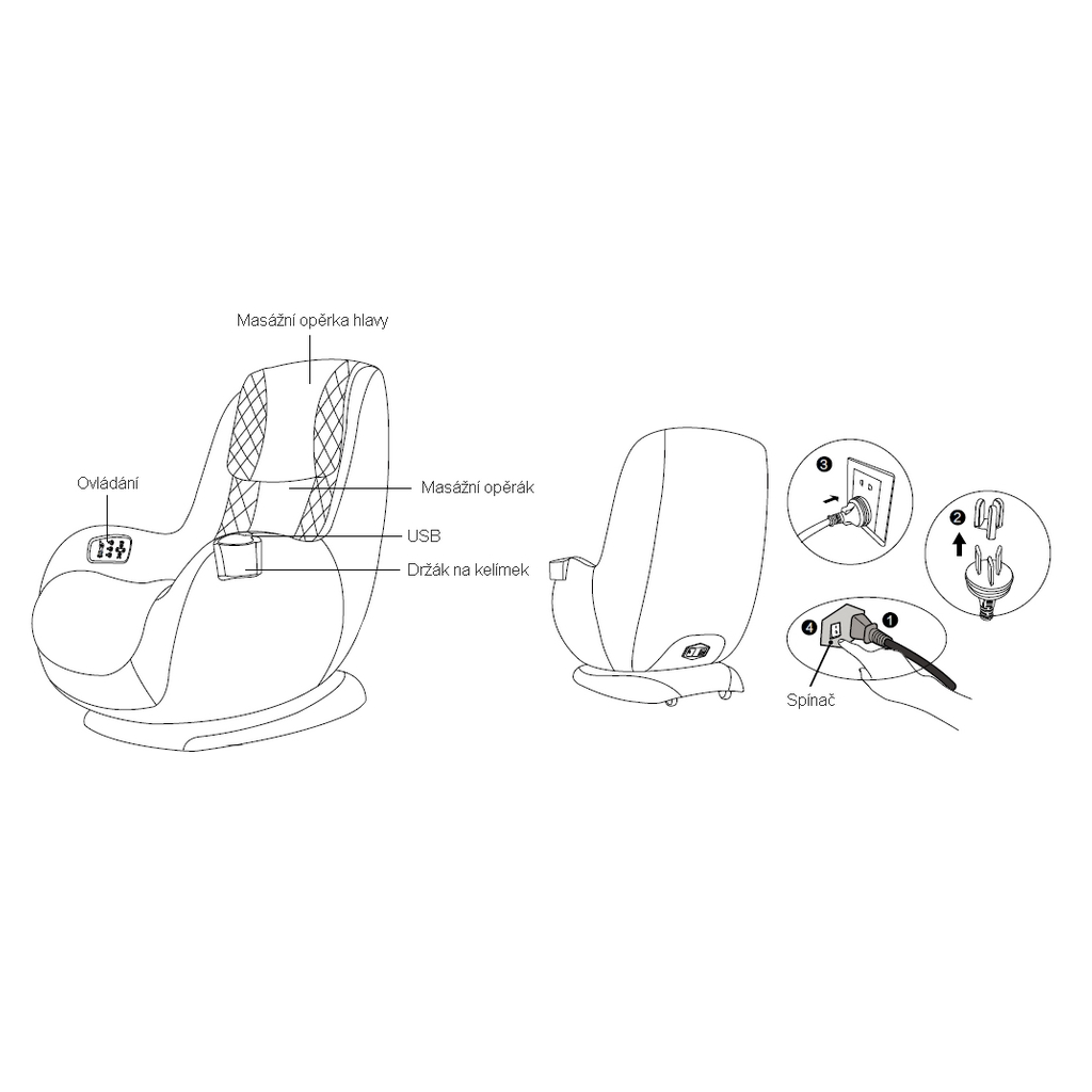 Křeslo je napájeno ze zásuvky, vypíná se tlačítkem a disponuje USB vstupem, pomocí kterého si můžete nabít mobilní telefon nebo tablet. Disponuje také kolečky pro snadnou manipulaci. Nosnost masážního křesla Dopio je 120 kg.
