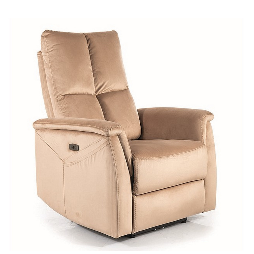 K usednutí láká bohaté polstrování a příjemná sametová látka, kterou je potažená celá konstrukce křesla. Ta je kovová. Křeslo můžete využít také k odpočinku vleže – elektrickým ovladačem naklopíte opěrák zad a nohou až do vodorovné polohy.