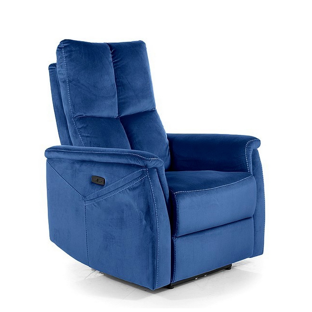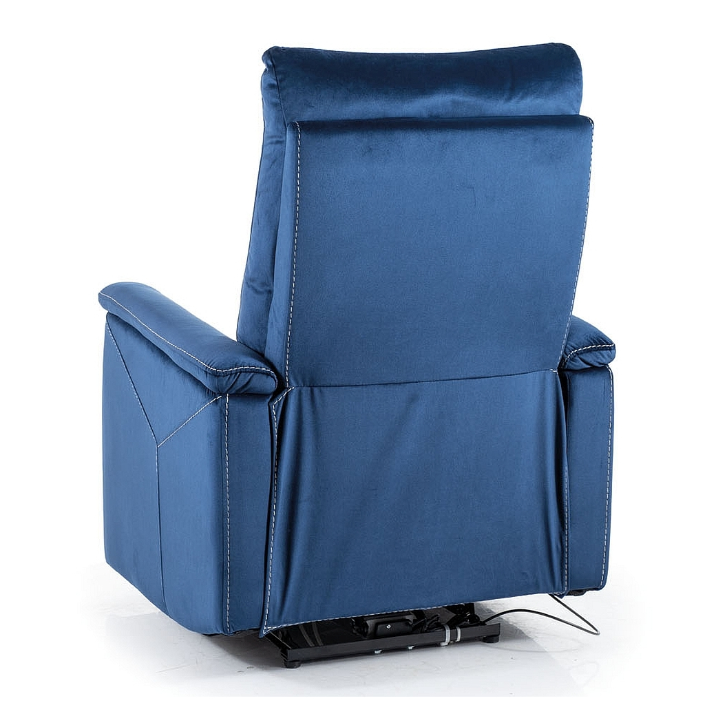 K usednutí láká bohaté polstrování a příjemná sametová látka, kterou je potažená celá konstrukce křesla. Ta je kovová. Křeslo můžete využít také k odpočinku vleže – elektrickým ovladačem naklopíte opěrák zad a nohou až do vodorovné polohy.
