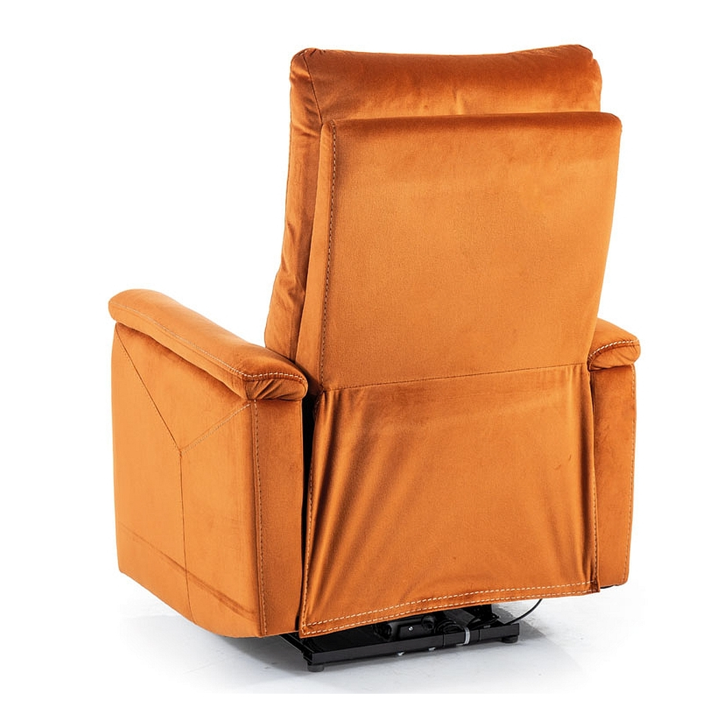 K usednutí láká bohaté polstrování a příjemná sametová látka, kterou je potažená celá konstrukce křesla. Ta je kovová. Křeslo můžete využít také k odpočinku vleže – elektrickým ovladačem naklopíte opěrák zad a nohou až do vodorovné polohy.