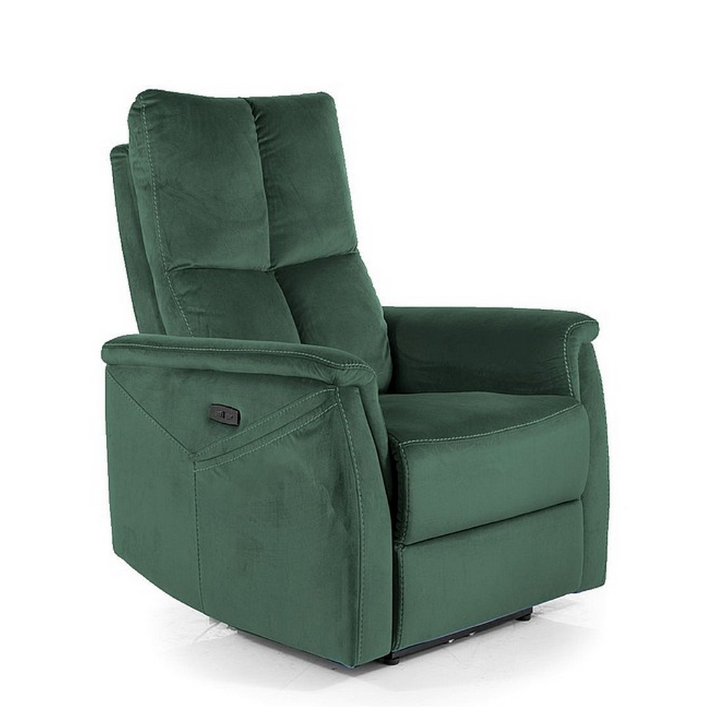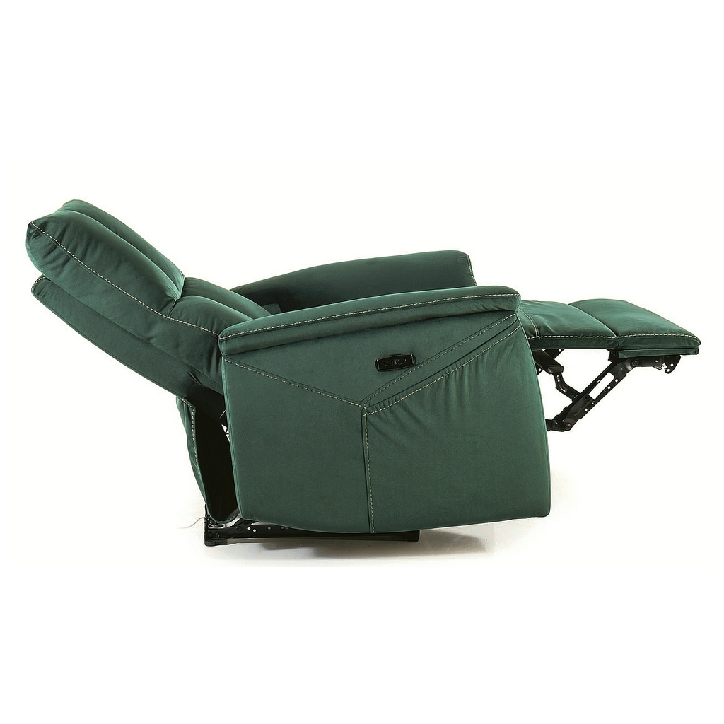 K usednutí láká bohaté polstrování a příjemná sametová látka, kterou je potažená celá konstrukce křesla. Ta je kovová. Křeslo můžete využít také k odpočinku vleže – elektrickým ovladačem naklopíte opěrák zad a nohou až do vodorovné polohy.